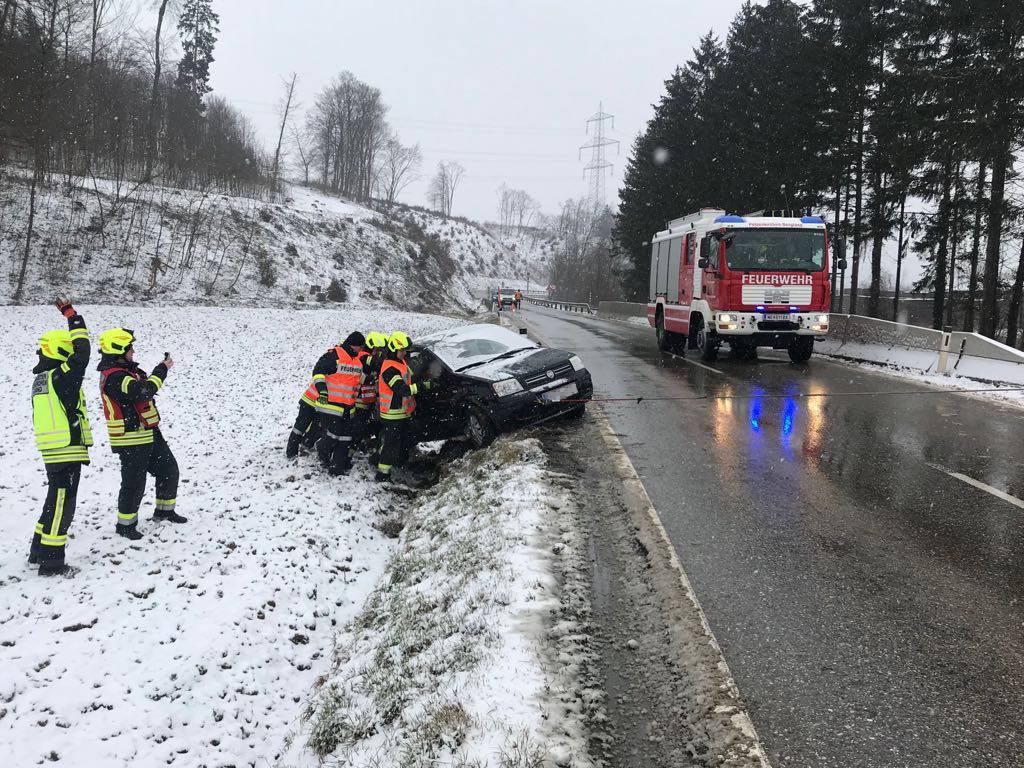 Seilwinde von der Mannschaft zurück auf die Fahrbahn geschoben. Der Fahrer konnte anschließend seine