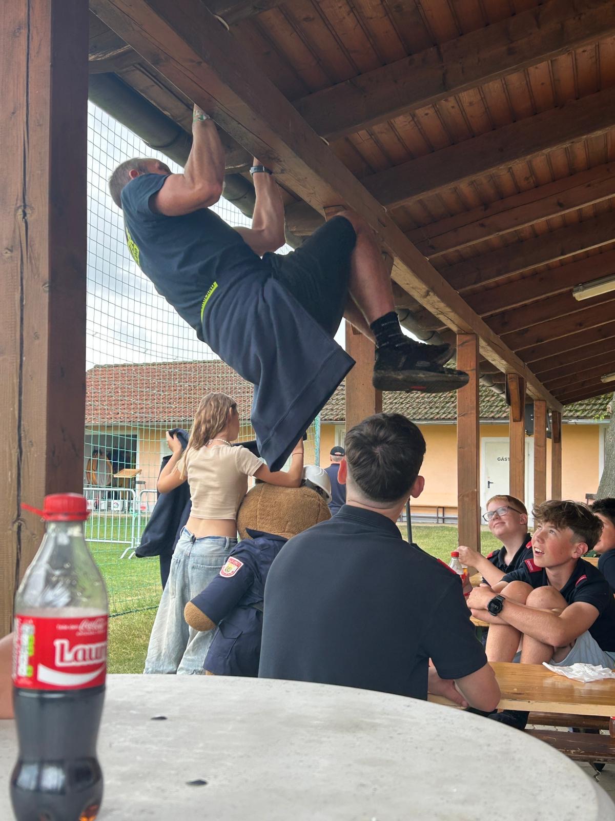 Auch abseits der Bewerbe war einiges los. Im Freizeitzentrum konnte man sich so richtig austoben – ob beim Trampolinspringen, bei verschiedenen Spielen oder einfach beim Genießen der vielen Leckereien: Softeis, Slushies, Langos, Leberkässemmel – für jeden war was dabei. Innerhalb des Zeltbereichs wurde ebenfalls fleißig gespielt, unter anderem Schach, Halli Galli und Schnapsen. Besonders wild wurde es, wenn sich unsere Jugend mit anderen Feuerwehren zu spontanen Wasserschlachten oder Rasierschaumduellen verabredete – da blieb garantiert niemand trocken, dafür aber die Stimmung umso besser. ![]()