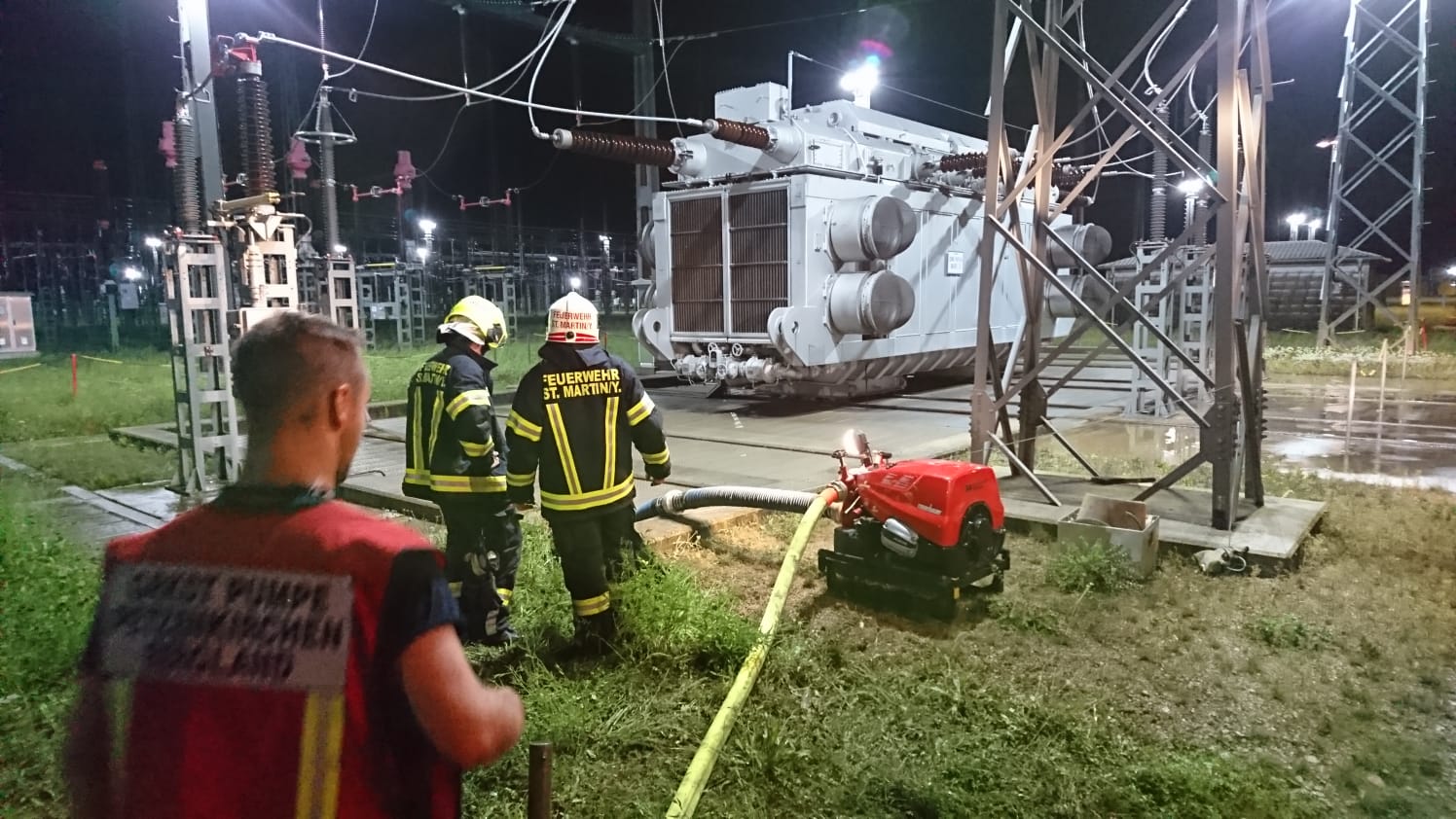 Gegen 21:10 Uhr kam von der BAZ (Bezirks-Alarmzentrale) die Alarmierung zu einem B1-Brandverdacht im Umspannwerk Ybbsfeld. Ausgelöst wurde dieser Alarm durch die automatische Brandmeldeanlage. Weiters verfügt das Gebäude über eine automatische CO2-Löschanlage, die den Sauerstoff-Gehalt durch Fluten mit Kohlendioxid im Raum so stark herabsinkt, dass Brände schwer bis gar nicht entstehen können. Aufgrund dessen musste das Gebäude unter schwerem Atemschutz kontrolliert werden. Durch die Erkundungstrupps konnte kein Brand gefunden werden, meldeten aber einen starken Wassereintritt im Gebäude.