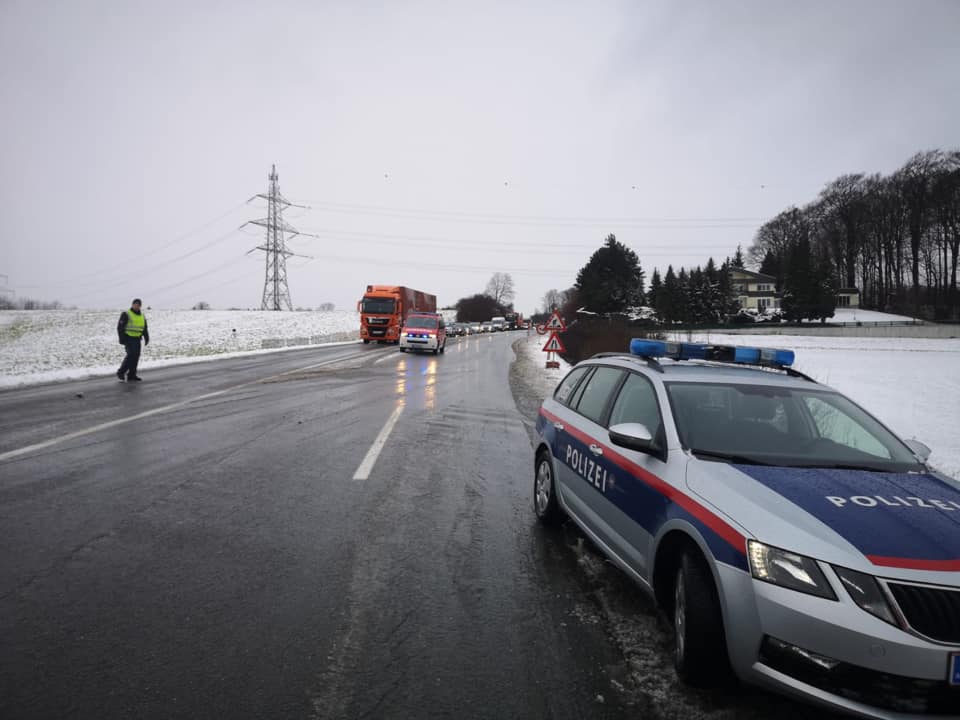Aus bisher ungeklärter Ursache rutschte am Mittwochmorgen auf der B25 Fahrtrichtung Ybbs ein LKW in den Graben.